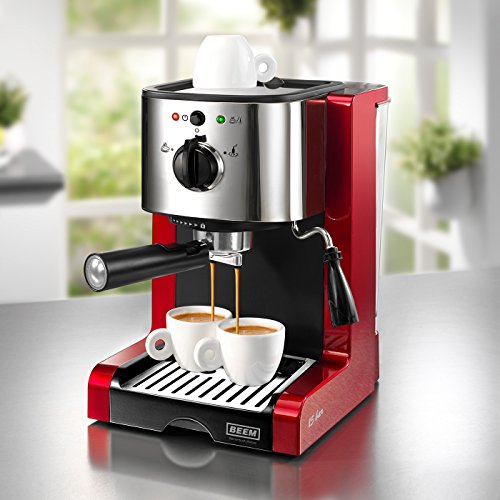 Espresso-Siebträgermaschine mit 15 bar in brillantrot
