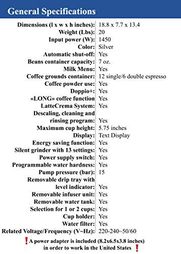 (1450 Watt, Digitaldisplay, integriertes Milchsystem, Lieblingsgetränke auf Knopfdruck, Herausnehmbare Brühgruppe)