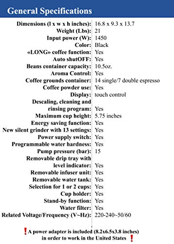 (1450 Watt, Digitaldisplay, Milchaufschäumdüse, Lieblingsgetränke auf Knopfdruck, Herausnehmbare Brühgruppe, 2-Tassen-Funktion)