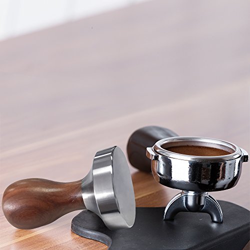 Durch den abnehmbaren Edelstahlfuß ist der Tamper leicht zu reinigen. Für eine gründliche Reinigung kann der Edelstahlfuß einfach vom Holzgriff des Espressodrückers abgeschraubt werden.