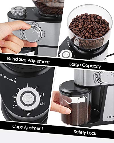 18 Mahlgradeinstellungen, abnehmbarer Bohnenbehälter & Behälter, Auswahl 2-14 Tassen, 200W