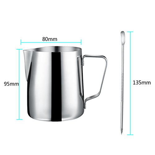 Litehaus Kännchen für Cappuccino Latté Macchiato 350ml/12fl.oz 304 Edelstahl Milchkännchen Cafe Art