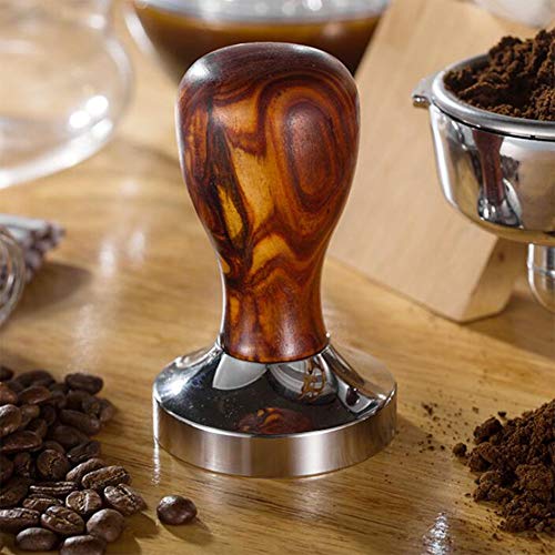 Durch den roten Sandelholzgriff liegt der Kaffeemehlpresser perfekt in der Hand um den Kaffee gleichmäßig im Siebträger zu pressen und verdichten sowie Druck aufzubauen.