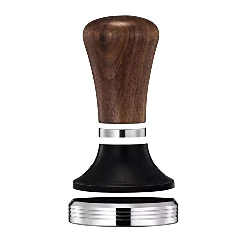 Durch die Kombination aus silbernen und schwarz brünierten Edelstahl, sowie dem dunkelbraunen Echtholzgriff ist unser Tamper ein echter Blickfang für die Küche.