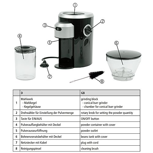 (12 Stufen-Mahlgrad, 2-10 Tassen, Kaffeepulver schonend mahlen, 150 W)