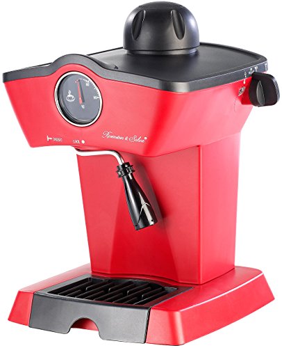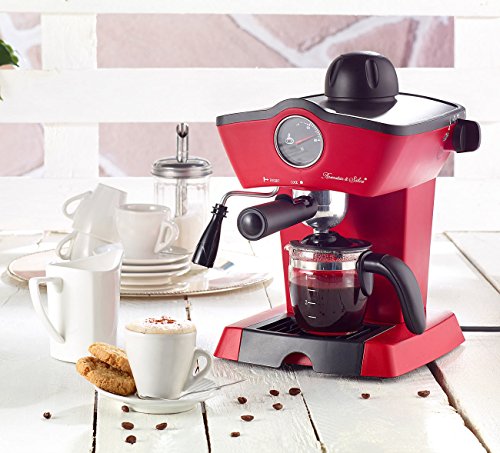Stylische Espressomaschine im Retro-Look: Ganz nostalgisch, mit Edelstahlfilter und rotem Gehäuse, überzeugt der günstige Kaffee-Automat auf ganzer Linie. In Minutenschnelle zaubert er Ihnen einen köstlich aromatischen Espresso.