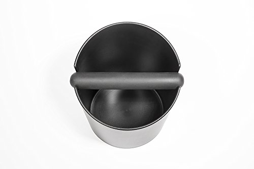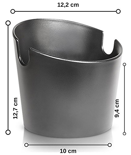 Mit gummierter und abnehmbarer Abklopfstange – Design-Behälter für Espresso Kaffeesatz aus dem Siebträger, Abklopfbehälter + Barista E-Book! (12 cm, schwarz).